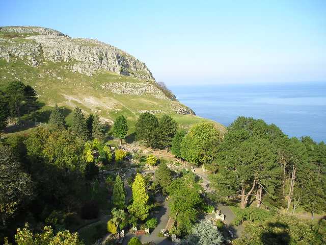 valley at the crags and cliffs of the Great Orme overlooking the sea.